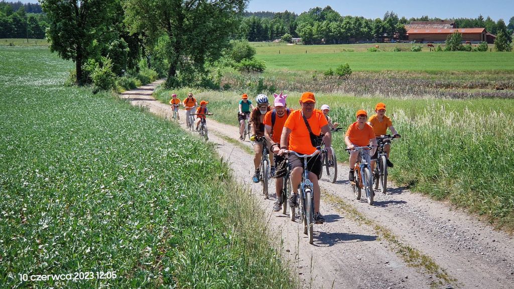 10 czerwca 2023 r. obyła się ósma edycja rajdu. W tym roku jechaliśmy trasą: Ryn - Canki - Dzikowizna - Orło - Sterławki Wielkie - Salpik - Knis - Ryn. Na początku uczestnicy zostali zapoznani z zasadami bezpieczeństwa na drodze podczas instruktażu policji. Jak zawsze w trasę wybrali się i mali i duzi. Tegoroczna droga okazała się wyzwaniem ze względu na liczne piaszczyste fragmenty, ale po regeneracji na pięknym terenie wiejskim w Salpiku, gdzie odbyło się tradycyjne ognisko, wszyscy odzyskali siły na powrót do domu. W rajdzie jak zawsze uczestniczyli klubowicze DKK i MDKK, czytelnicy biblioteki i mieszkańcy miasta. Serdeczne podziękowania panom: Maciejowi, Markowi i Zenonowi za pomoc w wytyczeniu trasy i prowadzeniu grupy. Dziękujemy także za gościnę pani sołtys wsi Salpik za gościnność. Pogoda i humory dopisały w tym roku wyjątkowo. Dziękujemy wszystkim za wspólny czas i do zobaczenia za rok!